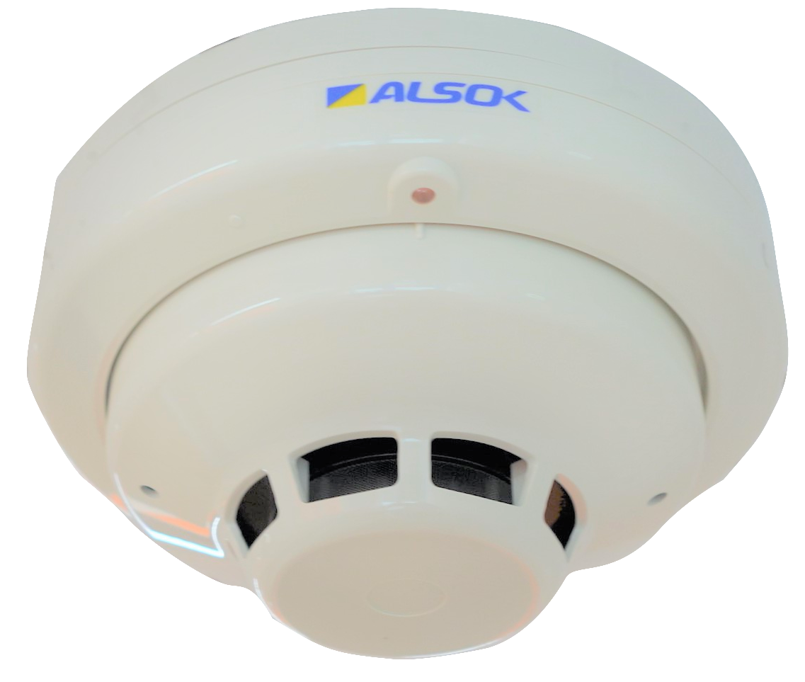 通報型火災感知器 煙を感知すると警報が鳴り、同時に通報装置が作動して警備員が駆け付けます。 |
